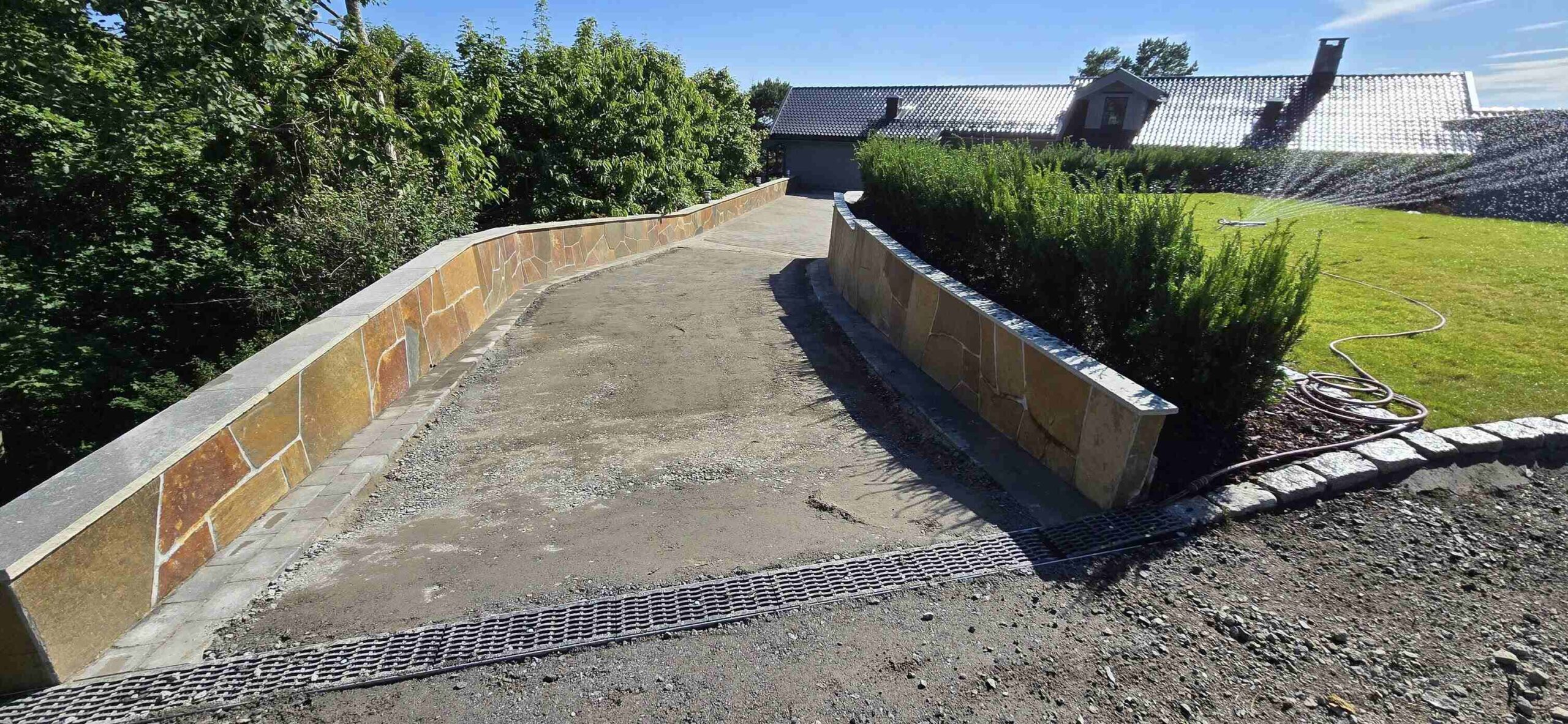 I dette prosjektet leverte vi steinarbeid rundt kirken i Kvelde, med fokus på varighet, estetikk og tilpasning til det historiske miljøet.
